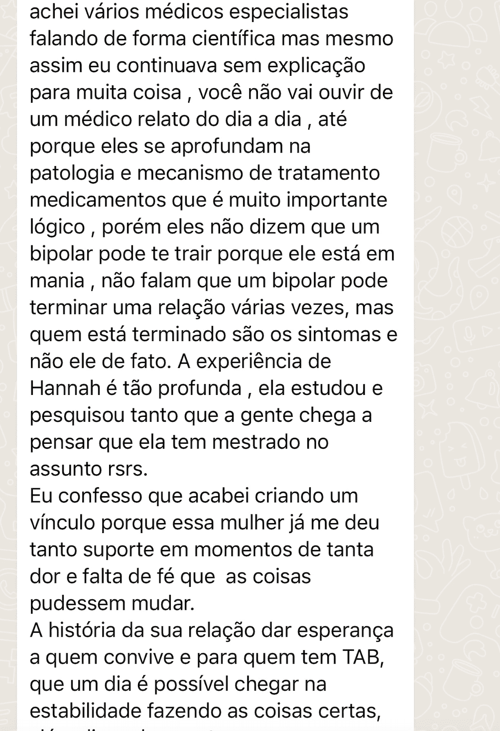 Advogada e criadora do Método Amor e Transtorno, Hannah transformou sua própria história e hoje ajuda mulheres a saírem do caos emocional, recuperarem sua autoestima e aprenderem a lidar com a bipolaridade no relacionamento sem se perder no processo.