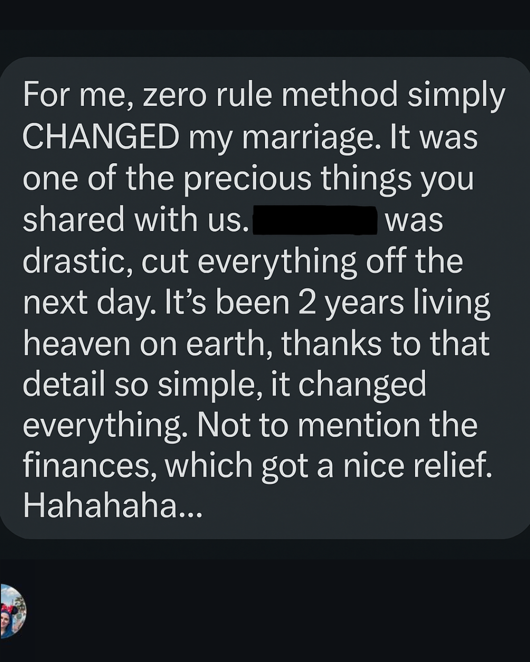 After discovering and adopting the Zero Rule, they saved a lot on everyday trivialities and found real stability in their relationship.